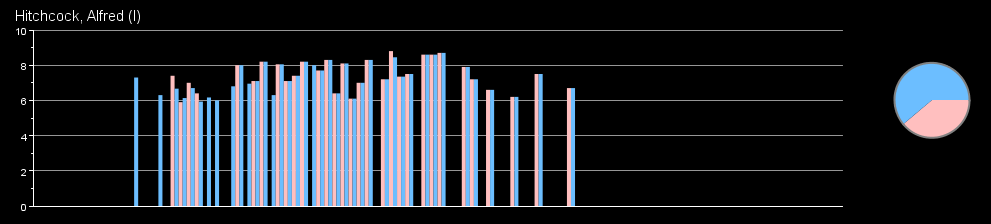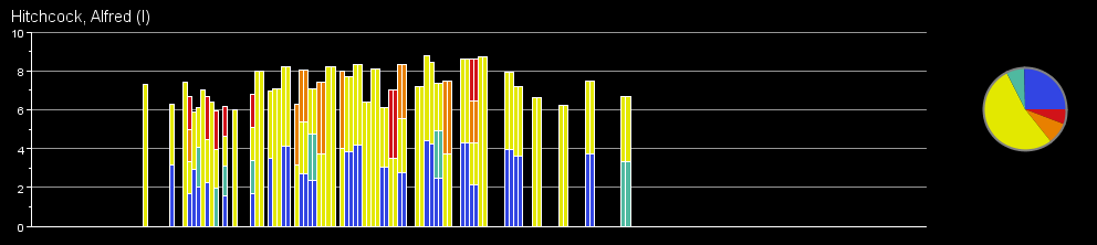 This slide can be used to control the number of graphs in the visualization. More graphs allows comparing multiple actors/directors simultaneously. But decrease the amount of space available to chart the career's rating